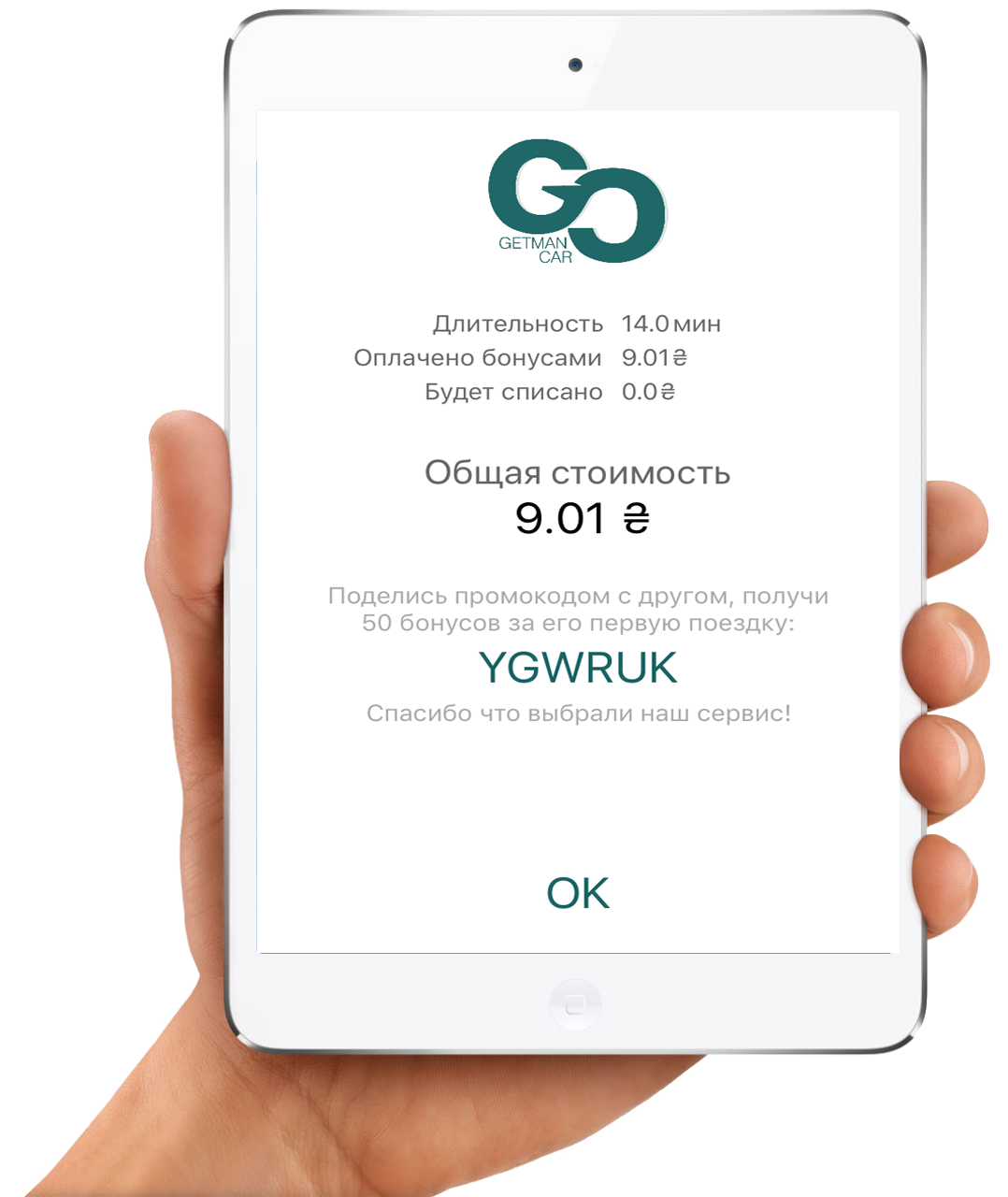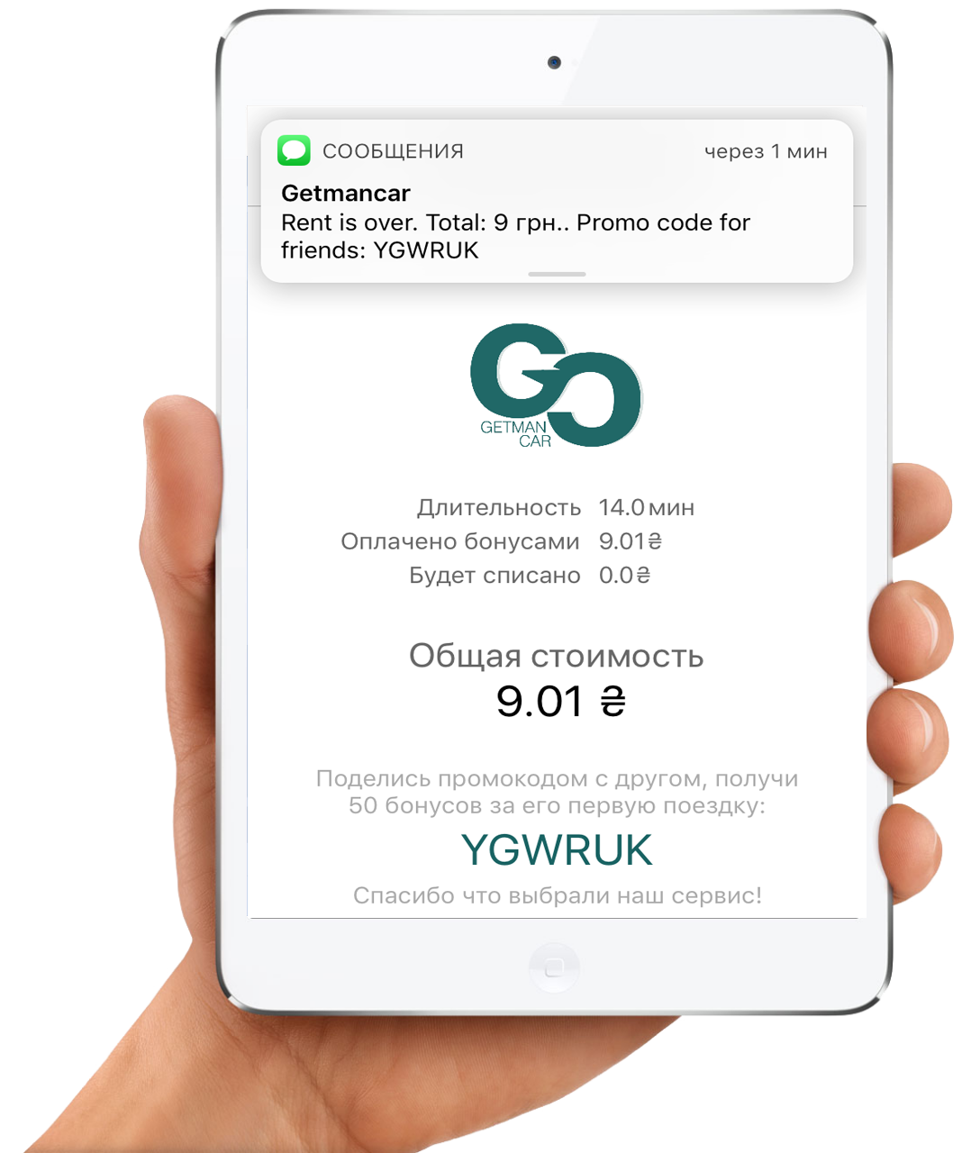 Receive the calculation of rental on your mobile device and e-mail. The information can be aldo duplicated via sms. The screen of your device will return to the strart rental mode.