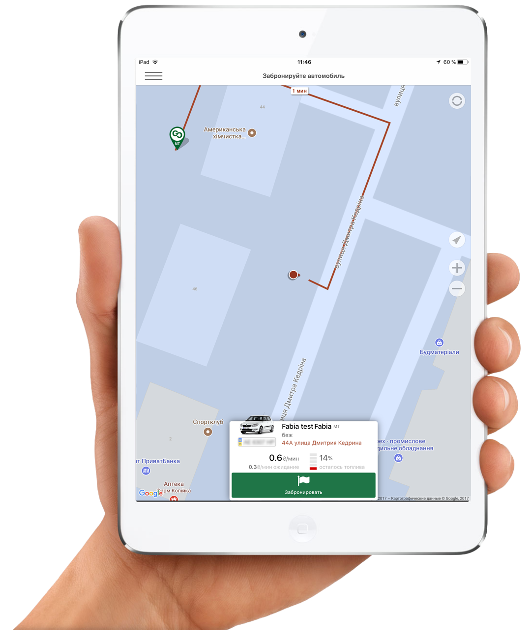 Use a car. You can see your mark and the car on the map. You can see the payment at the up of the App while using the car.