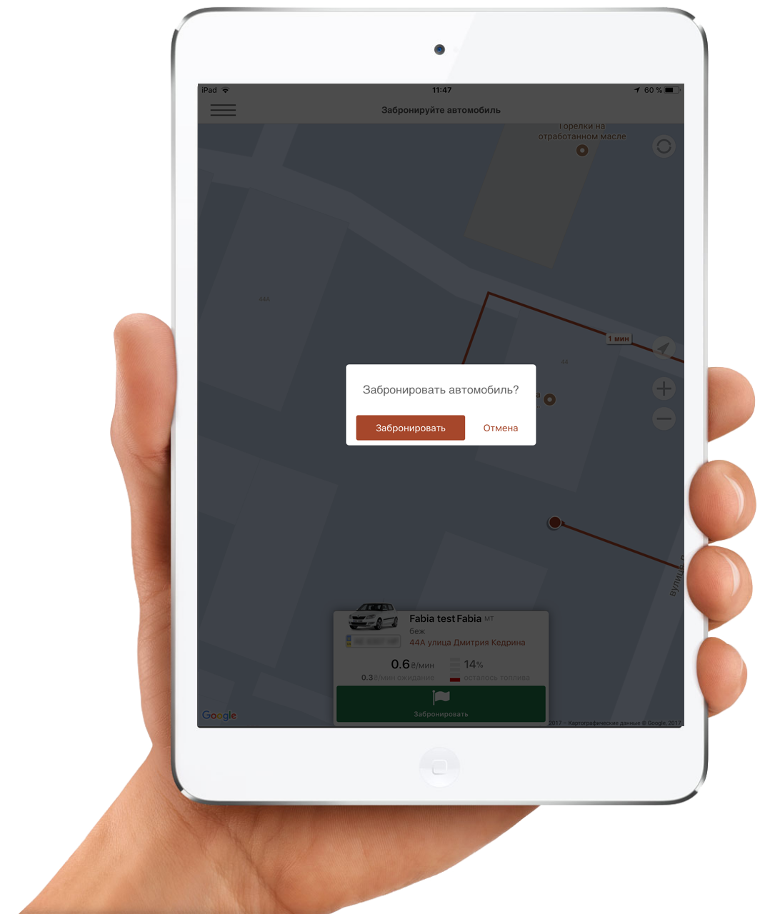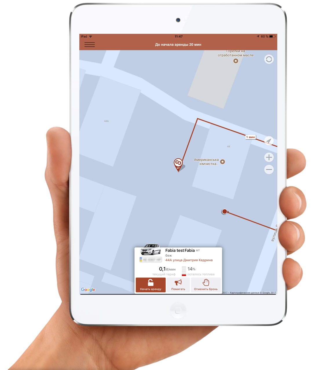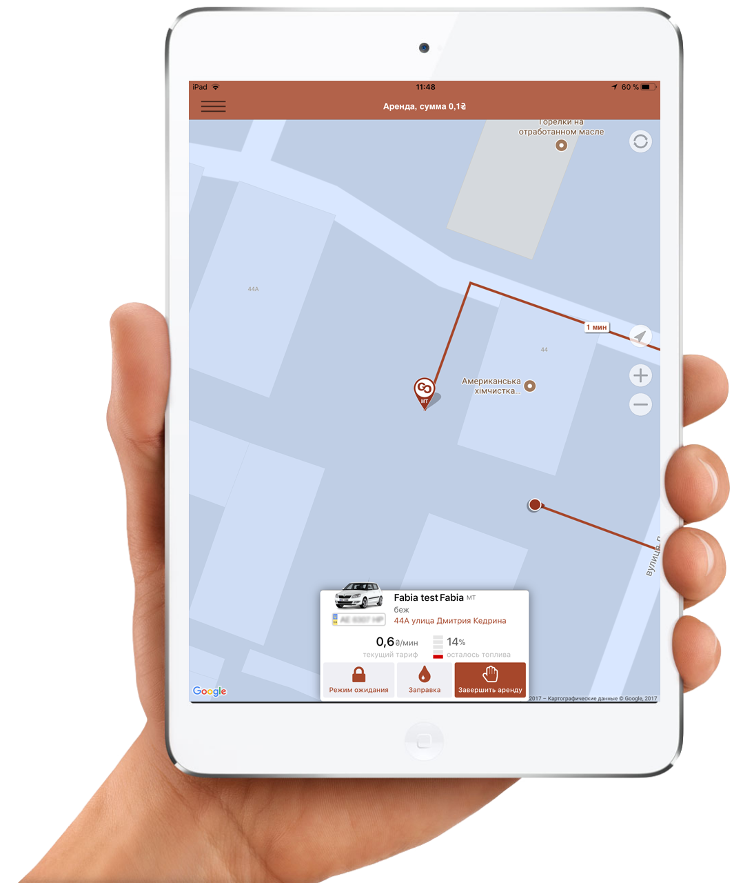 Complete the rental. Park the car at the allowed place. Turn off the engine, lights. Put the automatic transmission selection to “P” position or first transmission using the manual transmission. Turn on hand brake. Go out from the car, close the doors, click “complete rental”. If you turned off all necessary and close the windows, the car will closed (locked). You can make pictures and send it to us.