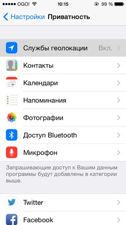 Далее выбираем Службы геолокации