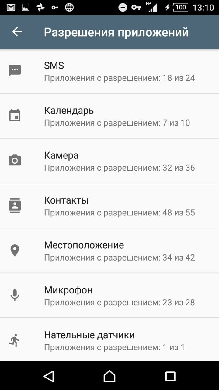 И жмем на пункт меню «Разрешения приложений»
