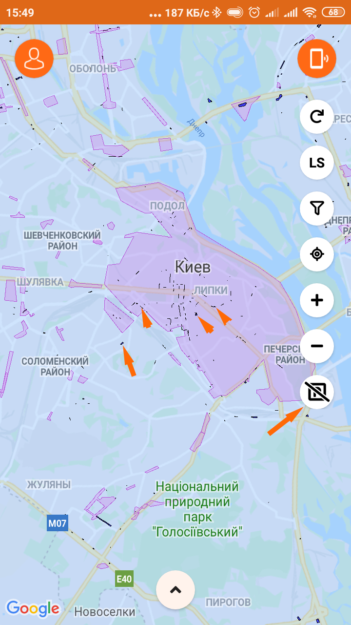 Здесь ты паркуешь автомобиль бесплатно, можно видеть места для парковки так: