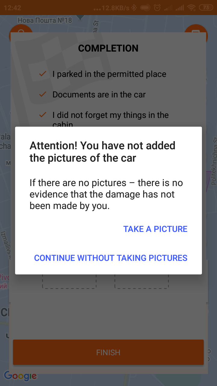 The photos that you take before / after the car rental will prove that at the time of your use of carsharing service, there were no additional car damages. Photos are your alibi. That is why make your decision to take photos, or not to take.