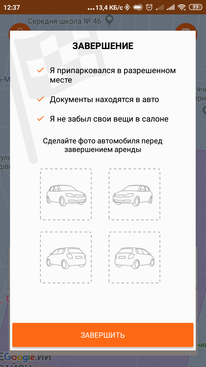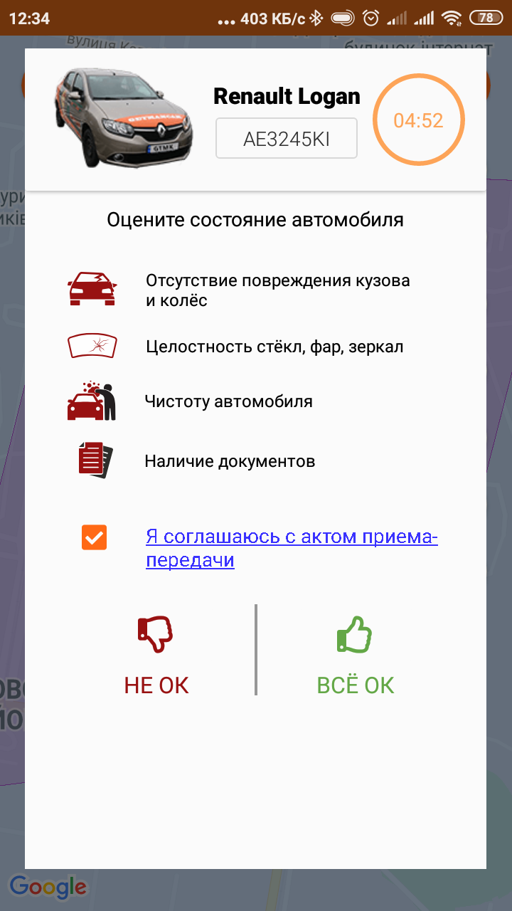 Перед началом поездки, тебе даются пять бесплатных минут на то, чтобы осмотреть автомобиль, сделать фото, проверить документы. Время необходимо потратить с умом, это совсем не означает, что необходимо быстро обойти машину и, решив, что все нормально, начать аренду.