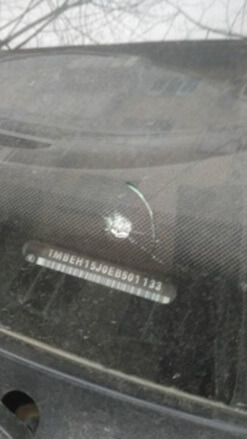 1. Фото лобового стекла: общее фото, номер стекла (фото марки и серийного номера), скол или трещина вблизи.