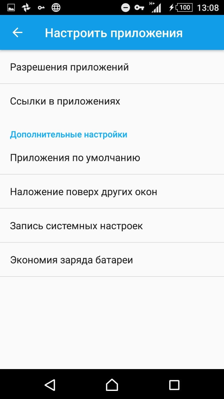 И жмем на пункт меню «Разрешения приложений»
